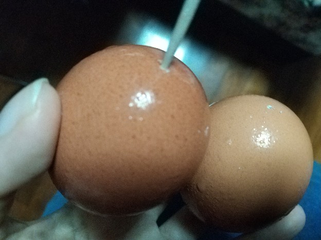 すると放屁したかのように卵のケツから空気が漏れるので、オナラしてるね(´・ω・`)という気持ちで見つめたあと…