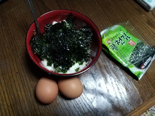 山芋がずっと冷蔵庫で眠ってたのでそろそろ使わねば、という事でとろろにしたのだが、我輩は、とろろと言えば丼、そして海苔と卵以外に能が無いので、本日も同じ感じで食うことにした。